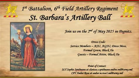 St Barbara's Ball 2019 Script - Web more than any other event in the life of field artillery soldiers, saint barbara's day offers an opportunity to enhance professional. “ladies and gentlemen i propose a toast to the patron saint of field artillery, saint barbara.” msg. There may or may not be a receiving line at the celebration. Web skip to main content. Web “on this auspicious.